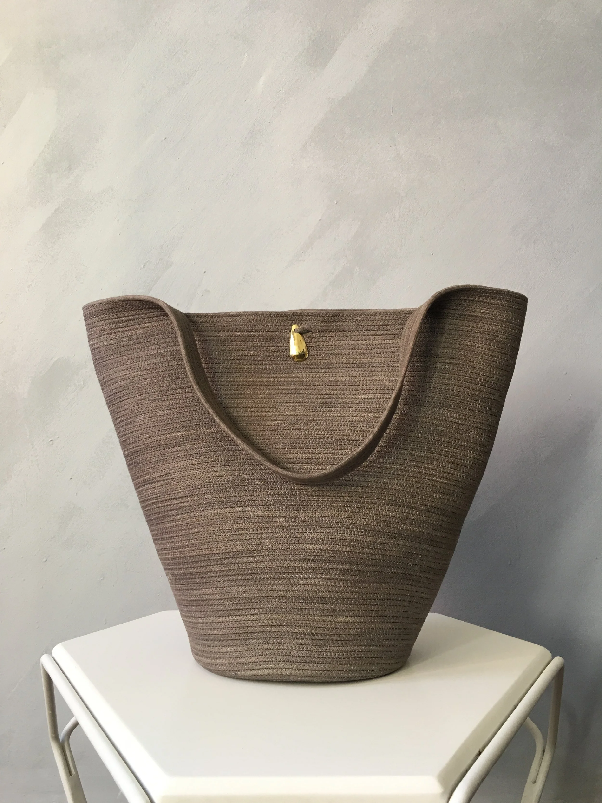 Materiales: soga de algodón cosida zig zag. Esta técnica innovadora da un producto de alta resistencia.